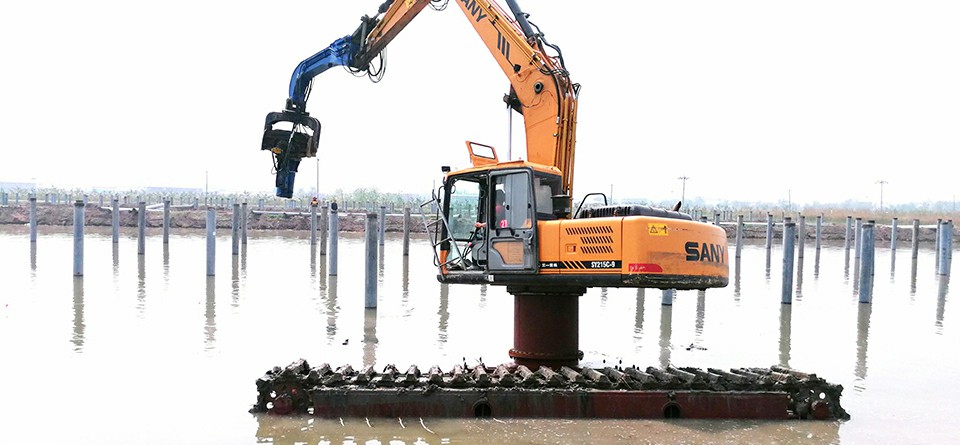 The amphibious excavator is a multi-purpose excavator suitable for land, shallow water, and deep water operating environments. The traveling device adopts a catamaran-type floating structure crawler frame and sealed box-shaped crawler shoes to ensure safe cruising on the water.