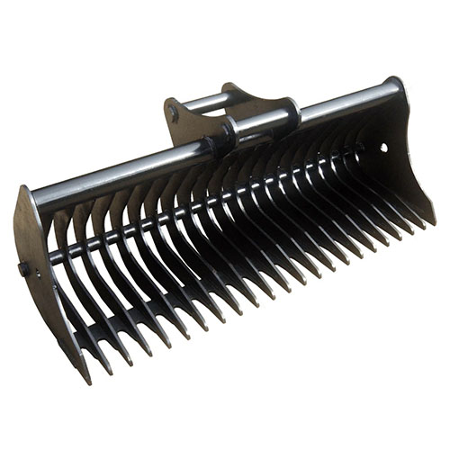Aeration, de-stoning, and debris removal from topsoil are some of the tasks that can be accomplished with these Rake Riddle Buckets/Excavator Scrapers/Rake Buckets/ Loader Buckets. In addition, they are helpful to clear light brash, and brambles by covering a large area quickly and at relatively shallow depths.