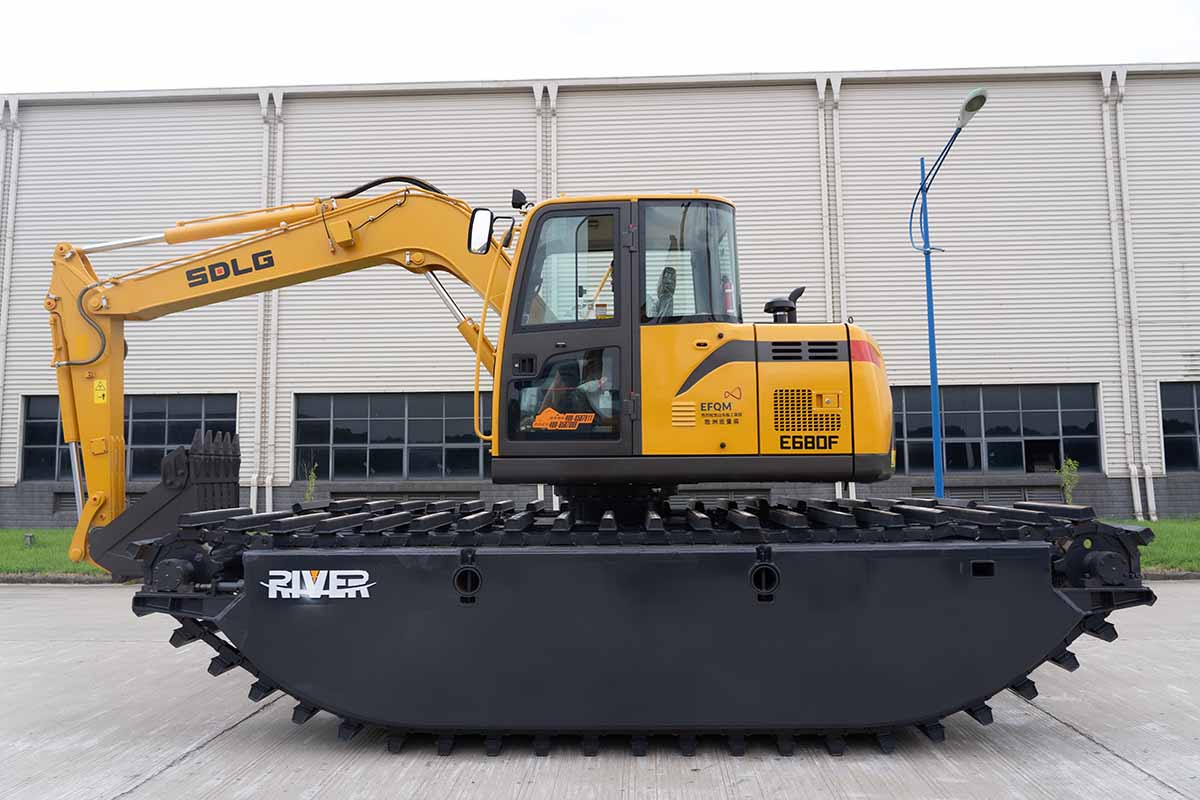 RIVER 80 amphibious excavator is designed for canal cleaning, wetland maintenance, and more. Equipped with advanced hydraulic attachments, high-strength track shoe cleats, and robust materials, this floating excavator ensures superior performance in challenging environments.