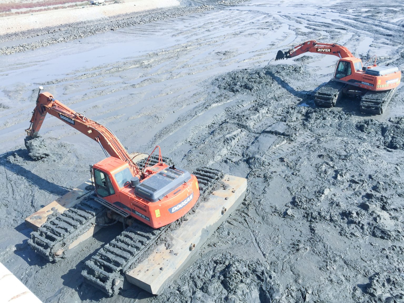 Amphibious excavators are also the best choice for environmental dredging. River dredging is often hampered by shallow water depth because excavators can easily get stuck or have limited range. Because the swarmp buggy can either float in the water or drive on land, the operators don’t have to worry about getting too close or too far from the water’s edge. Wide track and low weight result in less ground pressure, while heavier equipment creates deeper track ruts. In addition, the ability to install the dredge pump directly onto the excavator enables optimal mobility and productivity.